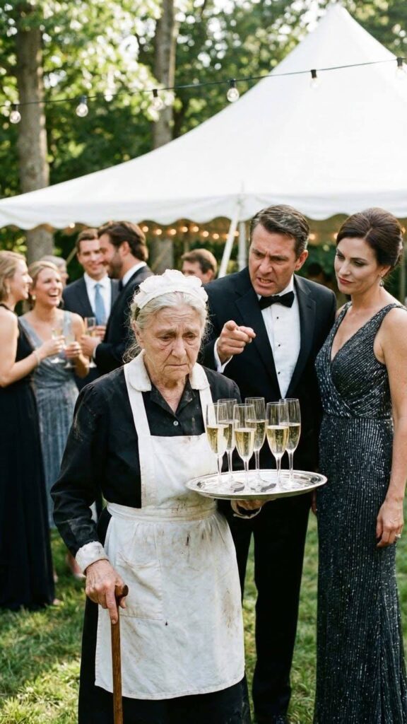 At first, my brain refused to process the visual data. It was a glitch, a hallucination born of exhaustion. A woman in a severe black dress and a stark white apron was moving through the crowd of guests, weaving carefully between clusters of people. She carried a heavy silver tray laden with champagne flutes, her knuckles white around the handles, her shoulders hunched as if she expected a blow to land at any moment.
